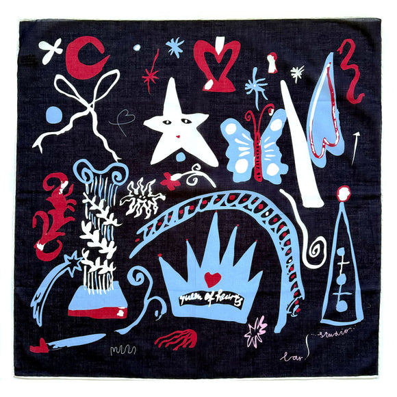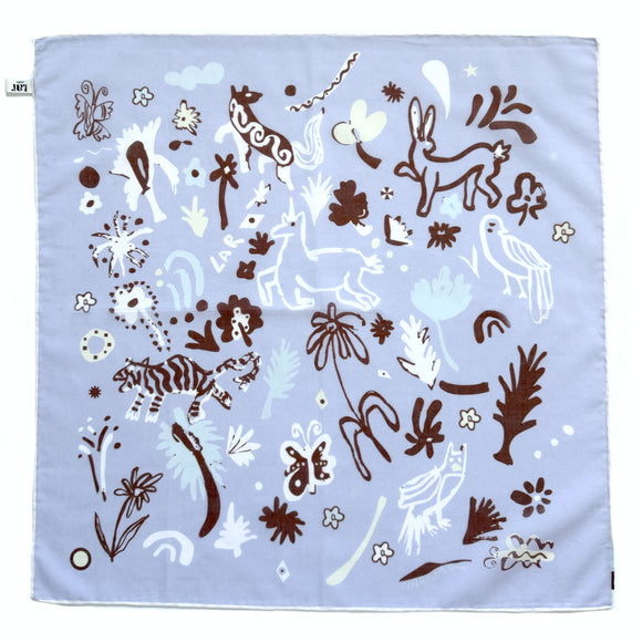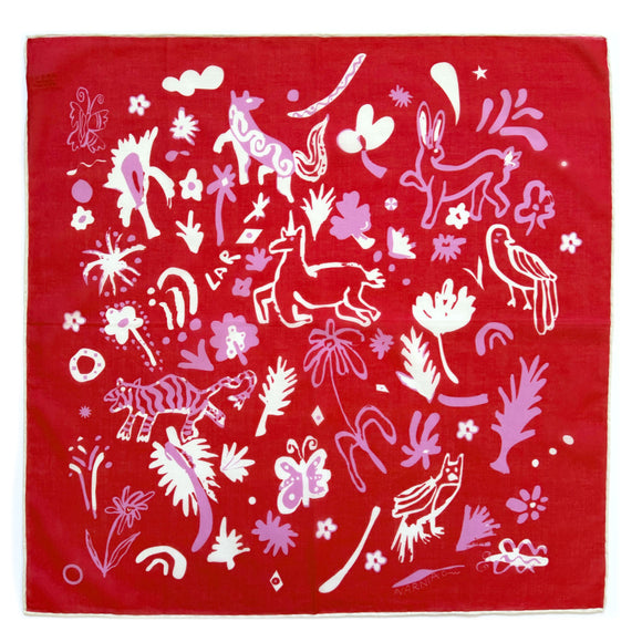 %100 Cotton Bandanas, made from Pure Cotton locally in Turkey. The prints are designed by Laris Alara Kilimci by hand later to be printed in boutique quantity, hand hemmed and finished with perfect LAR Studio blue embossed packaging. This product is %100 Vegan and produced Ethically.