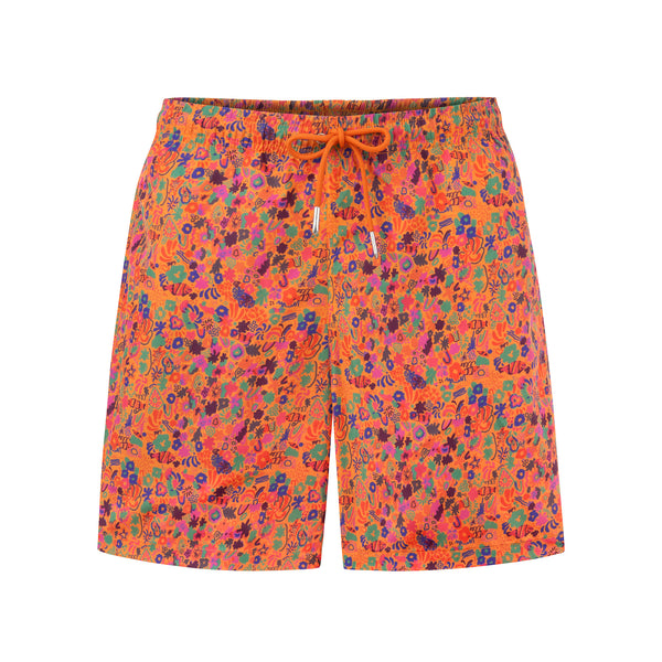 +Make a bold statement by the water with the Les Fleurs Men's Swim Trunks. Designed for style and performance, these swim shorts feature a vibrant floral print in rich, warm tones—perfect for those who love to stand out.