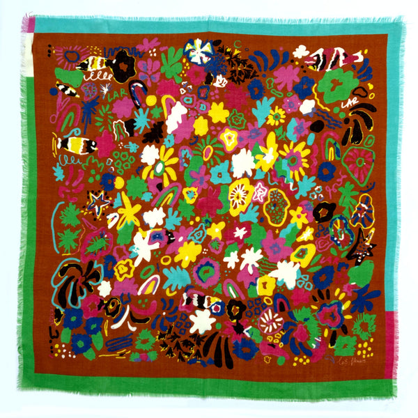 LES FLEURS BROWN WOOL SCARF